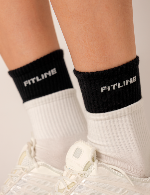Descubre la combinación perfecta de estilo y rendimiento con nuestras medias de diseño doble. Estas son un complemento genial para elevar tus outfits. Diseñadas para llevar la comodidad a otro nivel, incorporan un panel acolchado que amortigua cada paso, ideal para tus entrenamientos o tu día a día. Fabricadas en algodón premium y un refuerzo estratégico en el arco garantizan un ajuste perfecto que te acompañará siempre en su sitio. Finaliza tu look con el elegante logo de Fitline en el empeine, un detalle que sella su estilo deportivo y moderno.
